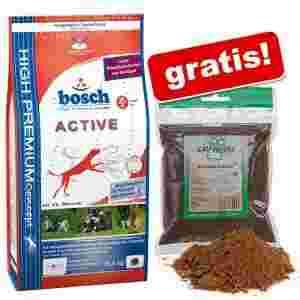Karma Bosch Active jest idealna dla psów, od których wymaga się szczególnych osiągnięć, podczas sportu i zabawy, a także w obowiązkach stróżowania i ochrony. Active jest szczególnie popularna również w hodowlach. Ta pełnowartościowa karma sprosta podwyższonemu zapotrzebowaniu psów na energie, bez zbędnego obciażania ich organizmu.