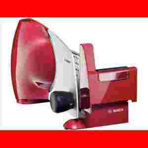 Bosch Krajalnica czerwony/srebrny MAS 62R1N Elegancka krajalnica z uniwersalnym nożem ze stali szlachetnej o falistym kształcie, wielostronne zastosowanie. Bezpieczna obsługa: przycisk zabezpieczający przed przypadkowym włączeniem, ochrona kciuka, element do przytrzymywania małych kawałków.
