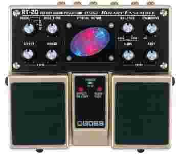 Wielu gitarzystów (Beatles, Jeff Beck, Santana, Stevie Ray i inni) wykorzystuje brzmienia wirujących głośników zarówno na scenie jak i w studiu nagrań. Obecnie firma BOSS proponuje najnowszy efekt z serii "dwupedałowców" - RT-20 Rotary Sound Processor. Zawarta technologia COSM (technologia modulacji) sprawia, że RT-20 produkuje autentyczne, klasyczne brzmienie wirujących głośników. Do dyspozycji mamy takie parametry jak: Rise Time, Horn i Bass Speed, Overdrive i wiele innych. Poza klasycznym modulatorem wirowania RT-20 umożliwia uzyskanie unikalnego efektu typu Overdrive oraz efekty pulsacyjne. Na panelu znajduje się wyświetlacz graficzny, ułatwiający pracę z wirującym sygnałem.