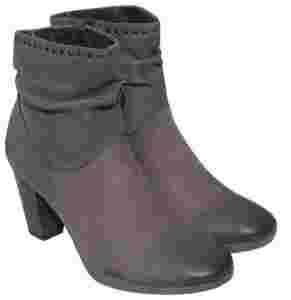 Botki damskie, długość za kostkę, wykonane w 100% ze skóry naturalnej, nubuk, delikatnej i miękkiej w dotyku, ocieplane, cholewka z wszytą po wewnętrznej stronie buta gumą, co pozwala na idealne dopasowanie się buta do szerokości nogi. Cholewka lekko marszczona, na górze wykończona ćwiekami. Kozaczki zapinane na zamek błyskawiczny po wewnętrznej stronie łydki. Stabilny obcas, wkładka wewnętrzna z systemem onAIR, buty są bardzo lekkie. Produkt niemiecki.
