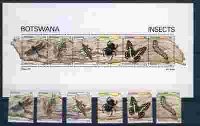 BOTSWANA Blok 15 zn 264/269 ** MOTYLE Fauna Owady