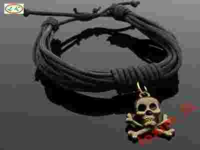 Br5338 BRANSOLETKA SZNUREK CZASZKA CHARMS LEXIM