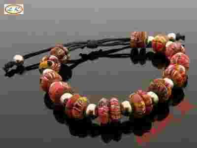 Br6725 BRANSOLETKA SZNUREK KORALIKI CZERWIEŃ LEXIM