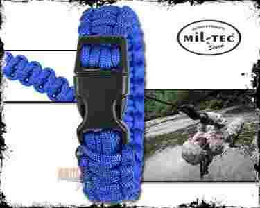 Bransoleta renomowanego, niemieckiego producenta – Mil Tec – specjalizującego się w produkcji i dystrybucji produktów o specyfikacji militarnej. Wykonana z zaprojektowanej przez US ARMY linki spadochroniarskiej PARACORD, charakteryzującej się imponującym udźwigiem (do 250kg obciążenia statycznego) oraz nieprzeciętną odpornością na uszkodzenia mechaniczne – przetarcia, rozdarcia, strzępienie itd. Dzięki szybkoschnącym właściwościom linka nie butwieje i nie pleśnieje. Bransoleta pleciona maszynowo, po rozwiązaniu może służyć jako trok, zabezpieczenie ekwipunku, sznur do prania, sznurowadła, linka mocująca (biwakowa), linka do budowy schronienia etc. Klamra wykonana z tworzywa sztucznego ABS, uniemożliwia przypadkowe rozpięcie.