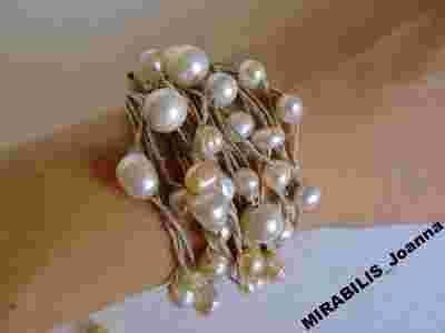 Bransoleta len,PERŁY naturalne słodkowodne