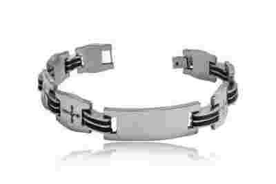 BRANSOLETA STAL I KAUCZUK - Krzyż Gotycki