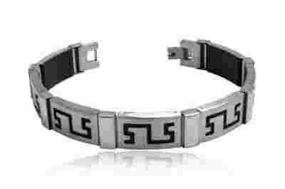 BRANSOLETA STAL I KAUCZUK - Wzór Grecki
