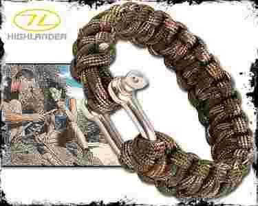 Bransoleta z szeklą typu BOWL, renomowanego, brytyjskiego producenta – HIGHLANDER. Wykonana z zaprojektowanej przez US ARMY linki spadochroniarskiej PARACORD, charakteryzującej się imponującym udźwigiem (do 190kg obciążenia statycznego) oraz nieprzeciętną odpornością na uszkodzenia mechaniczne – przetarcia, rozdarcia, strzępienie itd. Dzięki szybkoschnącym właściwościom linka nie butwieje i nie pleśnieje. Bransoleta pleciona maszynowo, po rozwiązaniu może służyć jako trok, zabezpieczenie ekwipunku, sznur do prania, sznurowadła, linka mocująca (biwakowa), linka do budowy schronienia etc. Gwintowane zapięcie stalowej klamry eliminuje możliwość samowolnego otwarcia. Niewielka masa zapewnia komfort użytkowania.