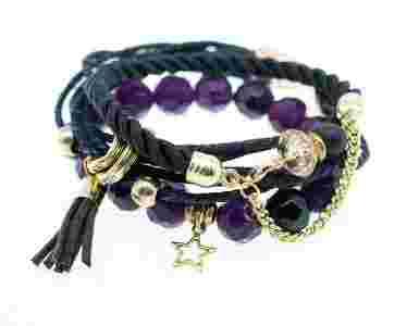 Bransoletka 3 w 1 fiolet czarny złoto sznurek HIT