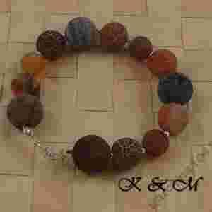 BRANSOLETKA AGAT CZERWONO - CZRNY KULE SREBRO