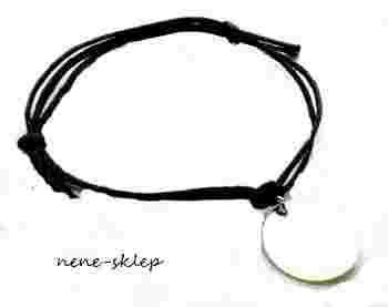 Bransoletka wykonana jest z woskowanego sznurka i zawieszki w kształcie koła ze srebra 925.