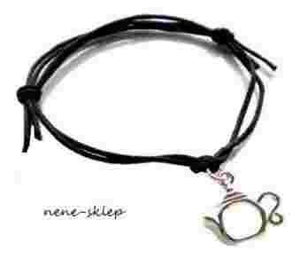 Przedmiotem aukcji jest sznurkowa bransoletka z regulacją zdobiona CZAJNIKIEM ze srebra 925.