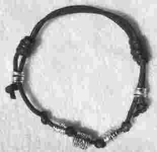 Przedmiotem aukcji jest bransoletka wykonana z czarnego sznurka woskowanego, z dodatkiem koralika modułowego, widoczna na zdjęciu. Długość regulowana, ale raczej na drobną rękę, szczupłą dłoń.