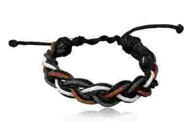Bransoletka Czarna skóra + sznurek