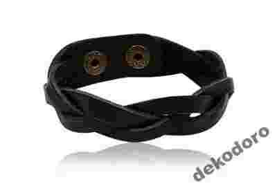 BRANSOLETKA CZARNA SKÓRZANA HIT pleciona