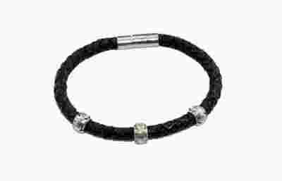 BRANSOLETKA- CZARNY SKÓRZANY PLECIONY RZEMIEŃ-BALI
