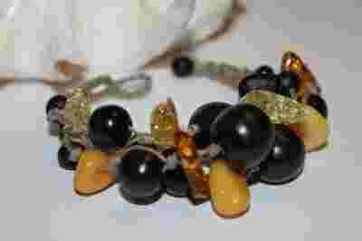 Bransoletka drewno kamienie hand made