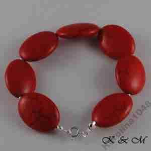 BRANSOLETKA HOWLIT CZERWONY OWALE, ŚLICZNA, SREBRO