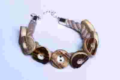 bransoletka lniana z guzikami z rogu