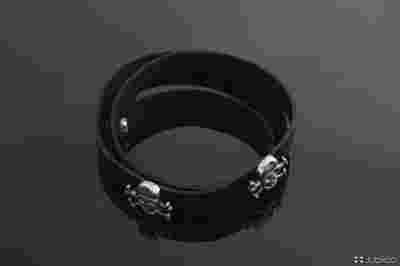 BRANSOLETKA MĘSKA CZARNY RZEMIEŃ potrójna aj126