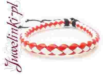 Bransoletka pleciona gruba czerwono biała j146