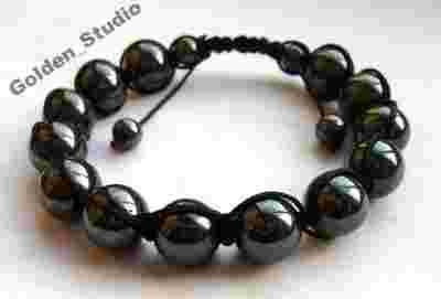Bransoletka pleciona SHAMBALLA męska CZARNY hemtyt
