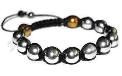 Bransoletka jest wykonana ze sznurka grubości 1mm zapleciona węzłem makramowym płaskim w kolumnie, z użyciem takich kamieni naturalnych jak hematyt srebrny o średnicy 10mm.