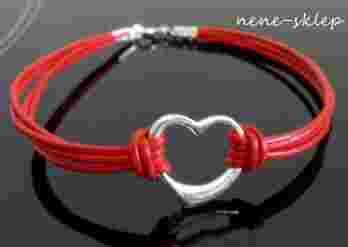 BRANSOLETKA SKÓRA RZEMIEŃ SREBRO SERCE ~ 8 kolorów