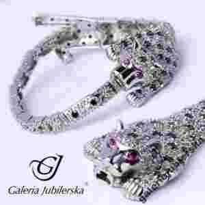 BRANSOLETKA SREBRNA PANTERA JAK ZŁOTO BRYLANTOWA