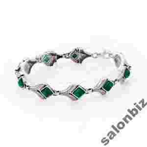 BRANSOLETKA SREBRNA Z MALACHITEM.