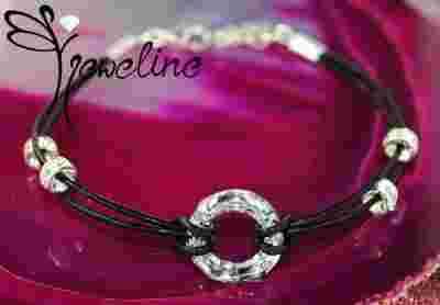 Srebro próby 925 i rzemień - z kryształkami firmy Swarovski Ring - wielkości 14mm i przekładkami Rondell
