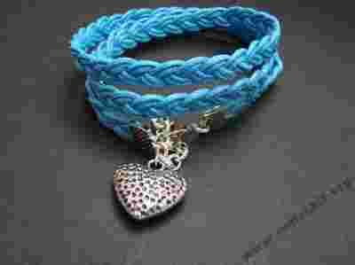 BRANSOLETKA SZNUREK WOSKOWANY Z OZDOBNYM SERCEM