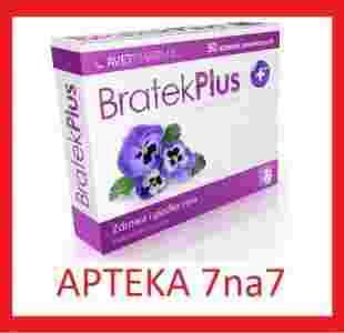 BRATEK PLUS suplement diety jest polecany także osobom w okresie dojrzewania, które chcą wspomóc prawidłowe funkcjonowanie skóry. Działanie BRATEK PLUS zawiera połączenie ziela fiołka trójbarwnego z cynkiem, który wspiera jego działanie. Wyciąg z ziela fiołka trójbarwnego wpływa korzystnie na stan skóry poprzez wspieranie procesów przemiany materii, co pomaga eliminować z organizmu szkodliwe substancje. Cynk uczestniczy w przetwarzaniu kwasów tłuszczowych, co wpływa na funkcjonowanie gruczołów wytwarzających łój. Skład ekstrakt z ziela fiołka trójbarwnego (Viola tricolor L.), mleczan cynku oraz składniki tabletki (hydroksypropylometyloceluloza, stearynian magnezu, dwutlenek krzemu, poliwinylopirolidon, guma arabska, lecytyna sojowa). 1 tabletka zawiera 150 mg ekstraktu z ziela fiołka trójbarwnego oraz 5 mg cynku (50% ZDS*). 2 tabletki zawierają 300 mg ekstraktu z ziela fiołka trójbarwnego oraz 10 mg cynku (100% ZDS*). ZDS – zalecane dzienne spożycie. Sposób użycia 1 - 2 tabletki, podczas posiłku. Tabletkę należy popić wodą. Nie należy przekraczać zalecanej dziennej porcji do spożycia w ciągu dnia.