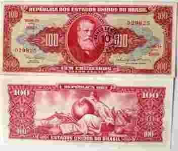 BRAZYLIA10CENTAVO/ 100 CRUZEIRO P-185a UNC ERROR