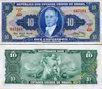 BRAZYLIA 10 Cruzeiros 1961-63 P-167a UNC