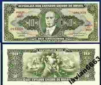 BRAZYLIA 10 CRUZEIROS 1967 r. P-183b UNC