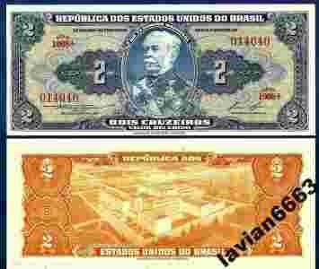 BRAZYLIA 2 CRUZEIROS 1954 r. P-151b UNC
