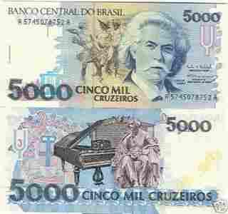 BRAZYLIA 5000 Cruzeiros 1993 P-232c UNC