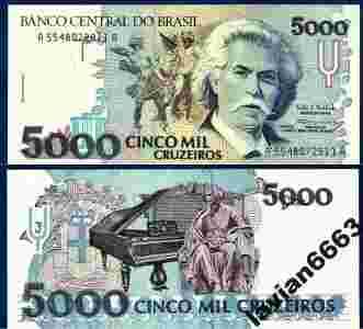BRAZYLIA 5000 CRUZEIROS 1993 r. P-232c UNC
