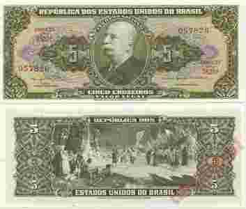BRAZYLIA 5 Cruzeiros 1964 p176 Stan I UNC BRAZIL.