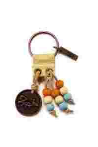 Fishbone - brelok do kluczy metalowy z zawieszką metalową i drewnianymi koralikami.