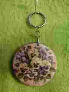 Brelok drewniany decoupage bratki