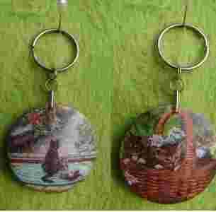 Brelok drewniany decoupage kotki