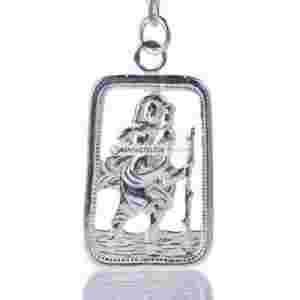 Przepiękny elegancki srebrny brelok z wizerunkiem Św. Krzysztofa, patron kierowców, wykonany z najwyższej jakości srebra. Zachwyca swoją oryginalną i niepowtarzalną formą oraz wspaniałym, misternym wzorem.
