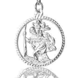 Przepiękny elegancki srebrny brelok z wizerunkiem Św. Krzysztofa, patron kierowców, wykonany z najwyższej jakości srebra. Zachwyca swoją oryginalną i niepowtarzalną formą oraz wspaniałym, misternym wzorem.