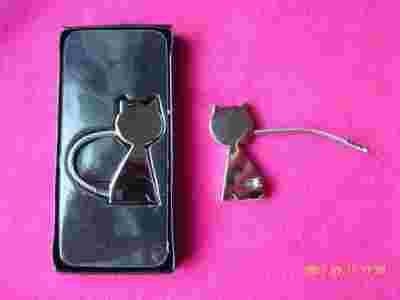 Przedmiotem aukcji jest stylowy, metalowy koci brelok