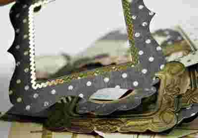 Wycinane dodatki z tektury oraz folii ze złotym połyskiem. W skład zestawu wchodzą 2 ramki foliowe.