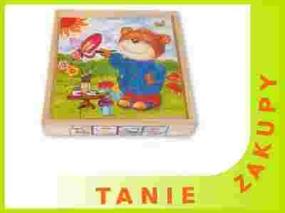 Puzzle drewniane z wizerunkiem misia 4 obrazki.