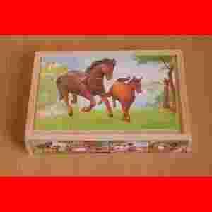 Puzzelki drewniane z wizerunkiem koników.