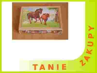 Puzzelki drewniane z wizerunkiem koników.